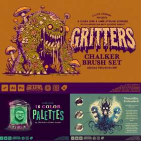 Gritters Chalker Brush Set is the ultimate toolkit for digital artists craving the raw, textured feel of real chalk. Designed by Emir Ayouni and Clark Orr, this all-in-one brush pack features 23 Procreate, Photoshop, and Illustrator-compatible brushes, 12 high-res textures, and 16 curated color palettes. Whether you’re sketching, shading, or screen printing, Gritters delivers authentic grit, pressure sensitivity, and handcrafted charm to your digital illustrations, concept art, and poster designs. For personal use.