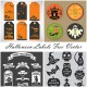 Set of 12 Vector Christmas and New Year labels, logos, badges collection. Winter insignia in monochrome and color designs. Vintage ribbons style.