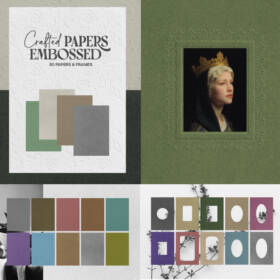 Elevate your designs with the Crafted Embossed Papers Frames collection—soft, romantic, and inspired by heirloom stationery. Featuring fine paper grain, subtle speckles, and raised floral details, these oval and rectangular frames beautifully showcase portraits, still-life imagery, and elegant layouts. The set includes 30 high-quality PNG frames and 30 JPG embossed papers in muted, sophisticated color palettes. For personal use.