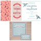 Set of 10 wedding invitation templates, 5 RSVP templates, 4 information card templates, 4 save the date templates, 6 thank you templates, 2 wedding program templates and 2 menu templates in nautical style.