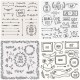 Set of 450 cute hand-drawn illustrations in vector format, 50 vector pattern brushes for Illustrator and 9 easy to use and edit pre-made card designs.
