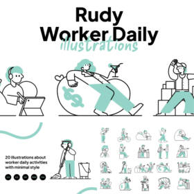 Rudy Worker Daily Illustrations is a charming set of 20 cute, minimalist illustrations capturing the daily life of workers with simplicity and warmth. Perfect for personal and commercial projects alike, these versatile digital assets can elevate your landing pages, mobile screens, book layouts, booklets, merchandise designs, and editorial content. Add a relatable, friendly touch to your designs with this delightful collection. For personal use.
