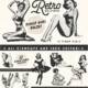 Vector images set with modern fruits and vegetables patterns, includes: cherry, orange, banana, watermelon, apple, plum templates for fruit shop designs or other illustrations.