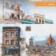 Watercolor Wedding map creator kit design set filled with individual design elements, flowers, houses, animals, landscapes, seamless pattern and more.